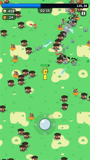 3、角色会主动攻击附近的敌人,敌人被击败后会掉落经验球。