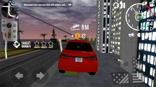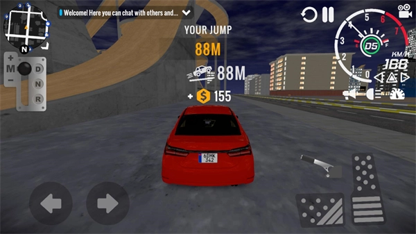 3、正式开始后,点击左侧区域可操控车辆转向,右侧区域用于控制油门与刹车;车辆的前进和后退操作,需通过点击左边的档位来切换。