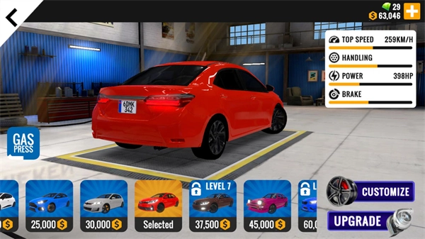 7、在主界面点击GARAGE即可进入车库,在车库中你能够解锁新的车辆,也可以对车辆进行改装和升级。