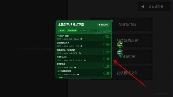 2、随后会弹出模组列表,里面的模组数量很多,玩家可以挑选合适的,然后点击最右侧的按钮。