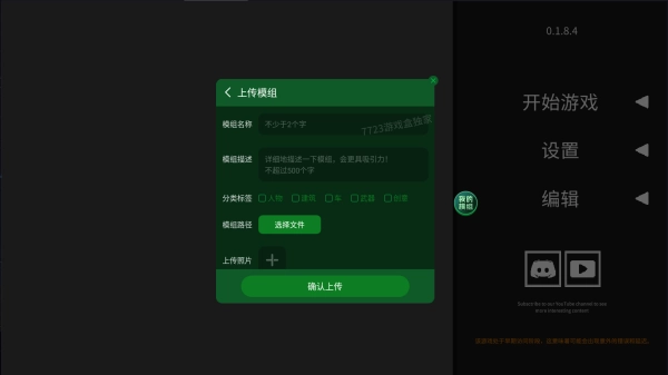 5、还可以上传自己的模组,只需输入模组名称和模组描述即可。