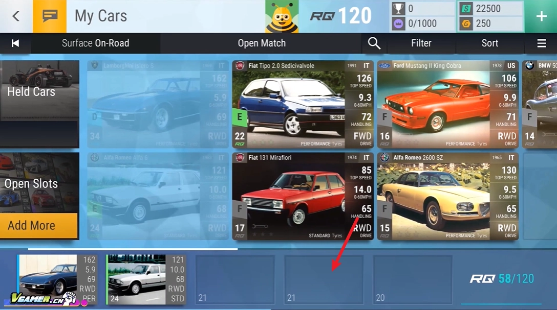 1、比赛开始前,我们得从自己的车库里选车来组建赛车小队。