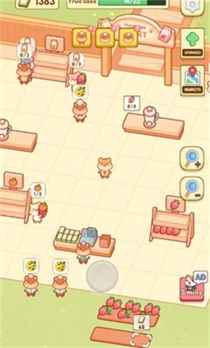 2、定制集市:你能够设计并拓展属于自己的集市,从不起眼的街角小店逐步发展成大型超市。管理好各类区域,像新鲜农产品区和坚果货架,打造出仓鼠们的购物乐园。