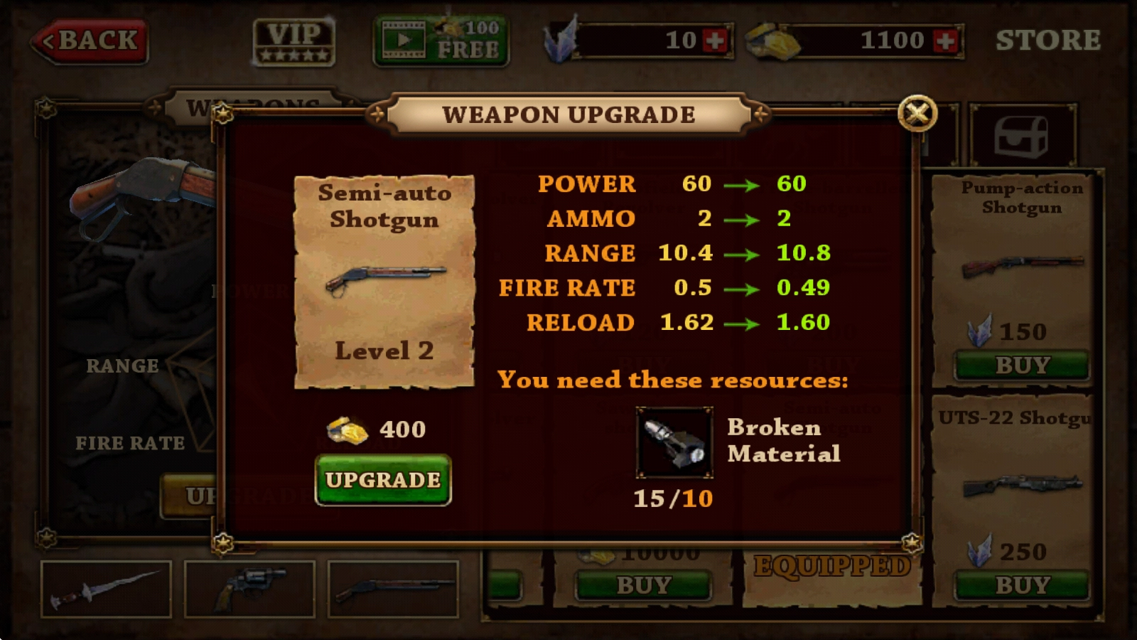 3、购买后的武器,还可以点击进行升级。