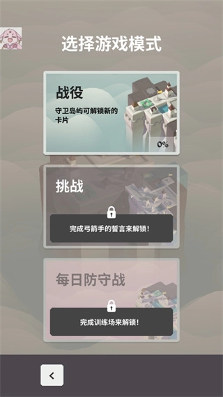 这里有三个模式,分别是战役、挑战和每日防守战。一开始只有战役模式是开放的,另外两个模式需要在后续逐步解锁。