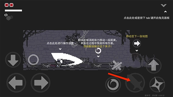 4、点击【翻滚】按钮能够快速向前移动一段距离,且在翻滚过程中可免疫所有伤害。