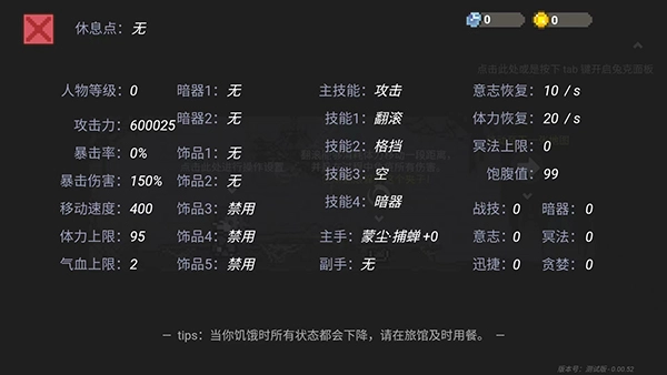 6、在完成操作环境的设置并熟悉基础操作后,点击右上角的【三角形】图标,就能打开图克面板,查看角色的详细属性。