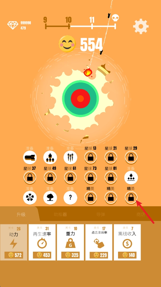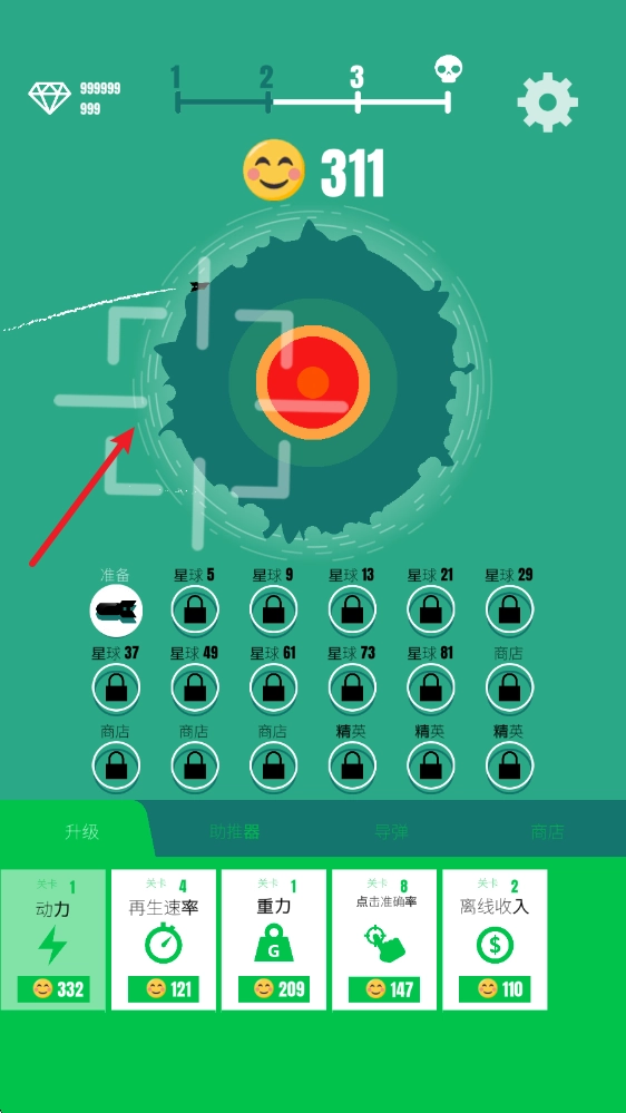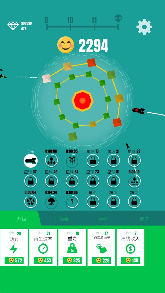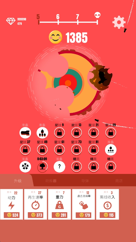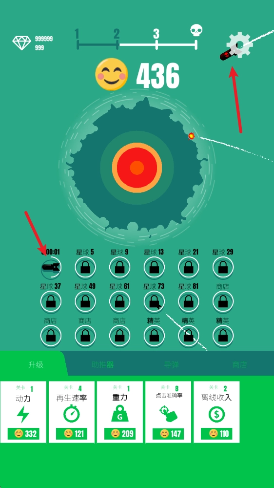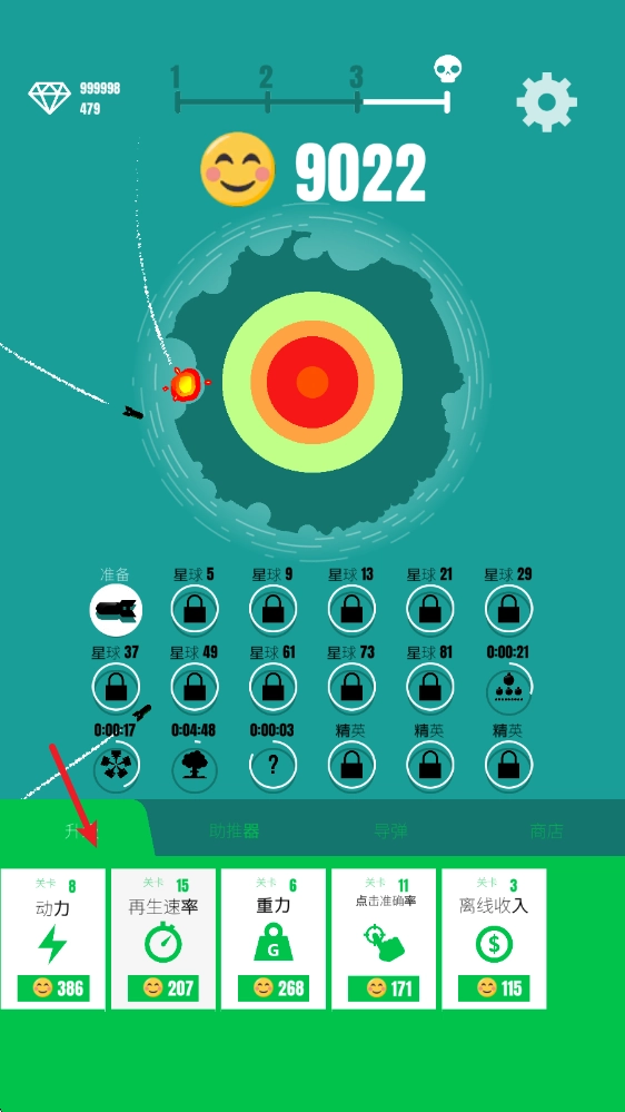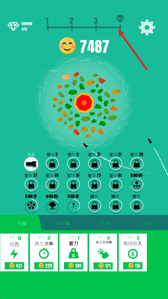 3、每次几种星球都能获取金币,这些金币可用于提升自身的各项属性。