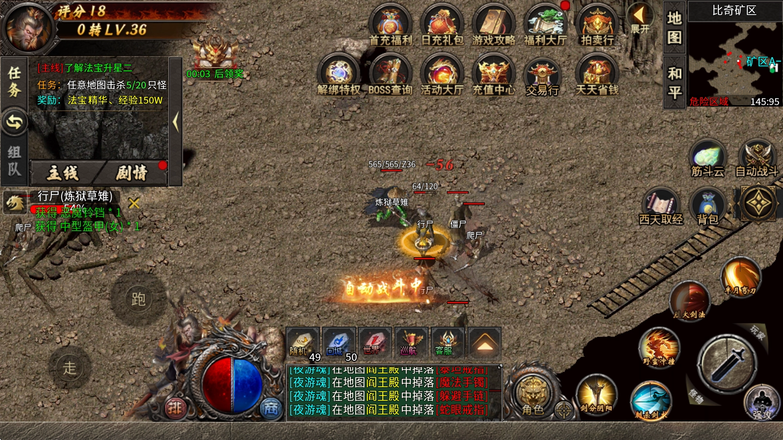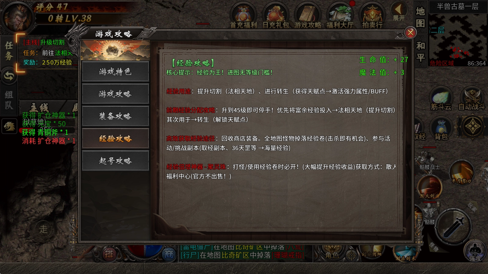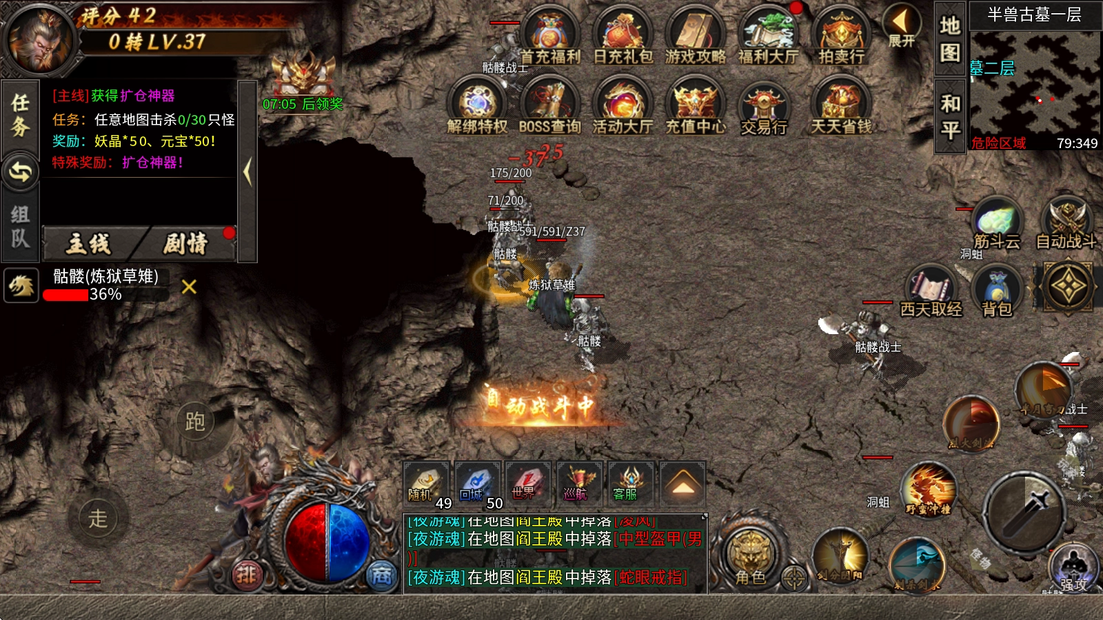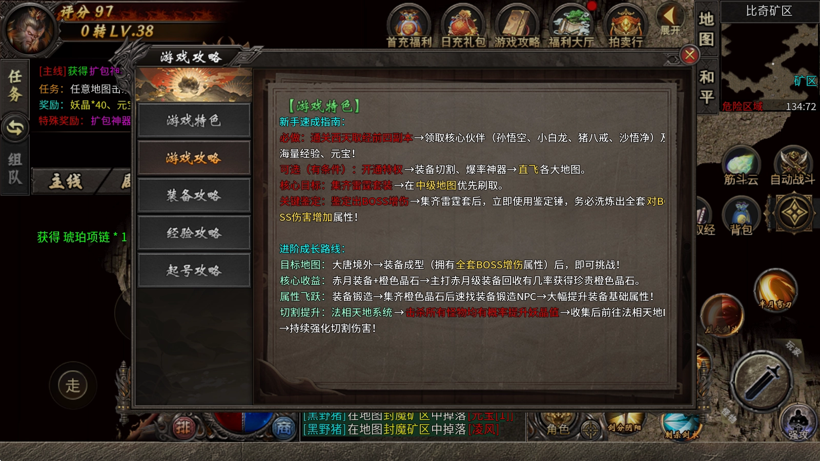 4、高效获取经验的途径:回收商店装备,全地图怪物有几率掉落经验卷(击杀即可获得机会)、参与活动或挑战副本(如取经副本、36天罡等)。
