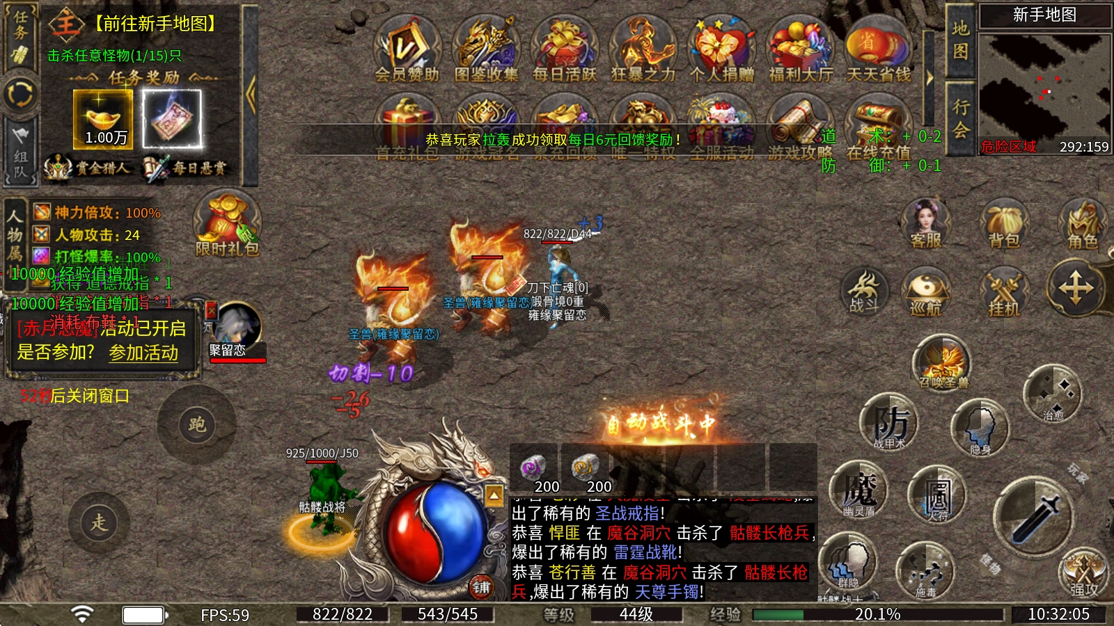 3、七日签到、在线奖励、新区首杀首爆等多样福利已备好,海量元宝、材料与经验奖励可尽情领取。