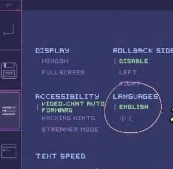 2、点击进入后,按照图中的标记找到对应位置,进行语言设置的选择,玩家也可根据自身的语言偏好在此处进行设置。