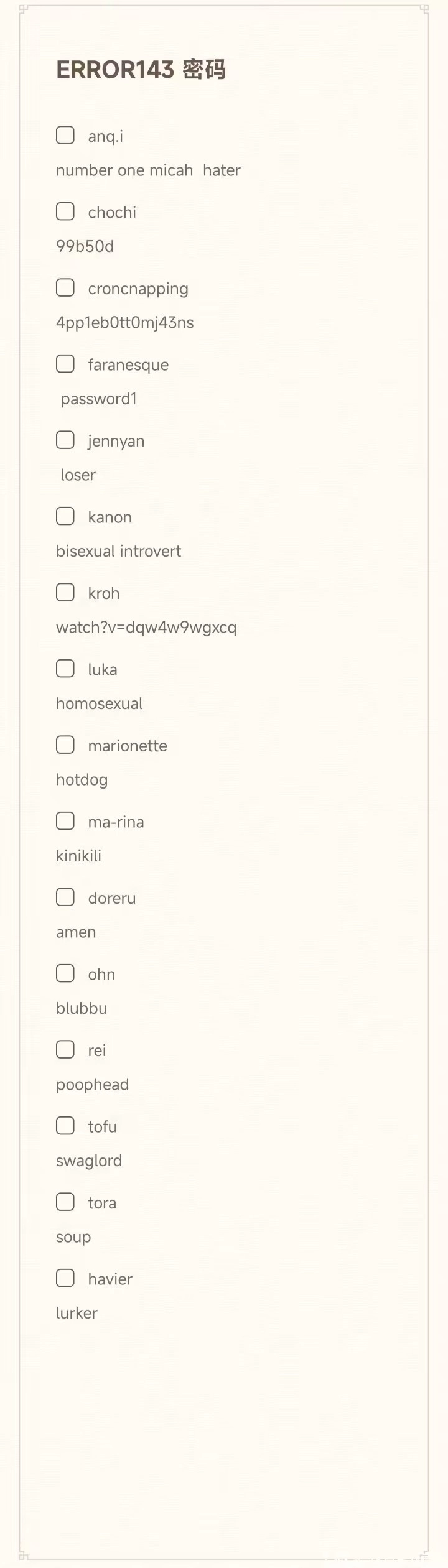 Error143密码大全