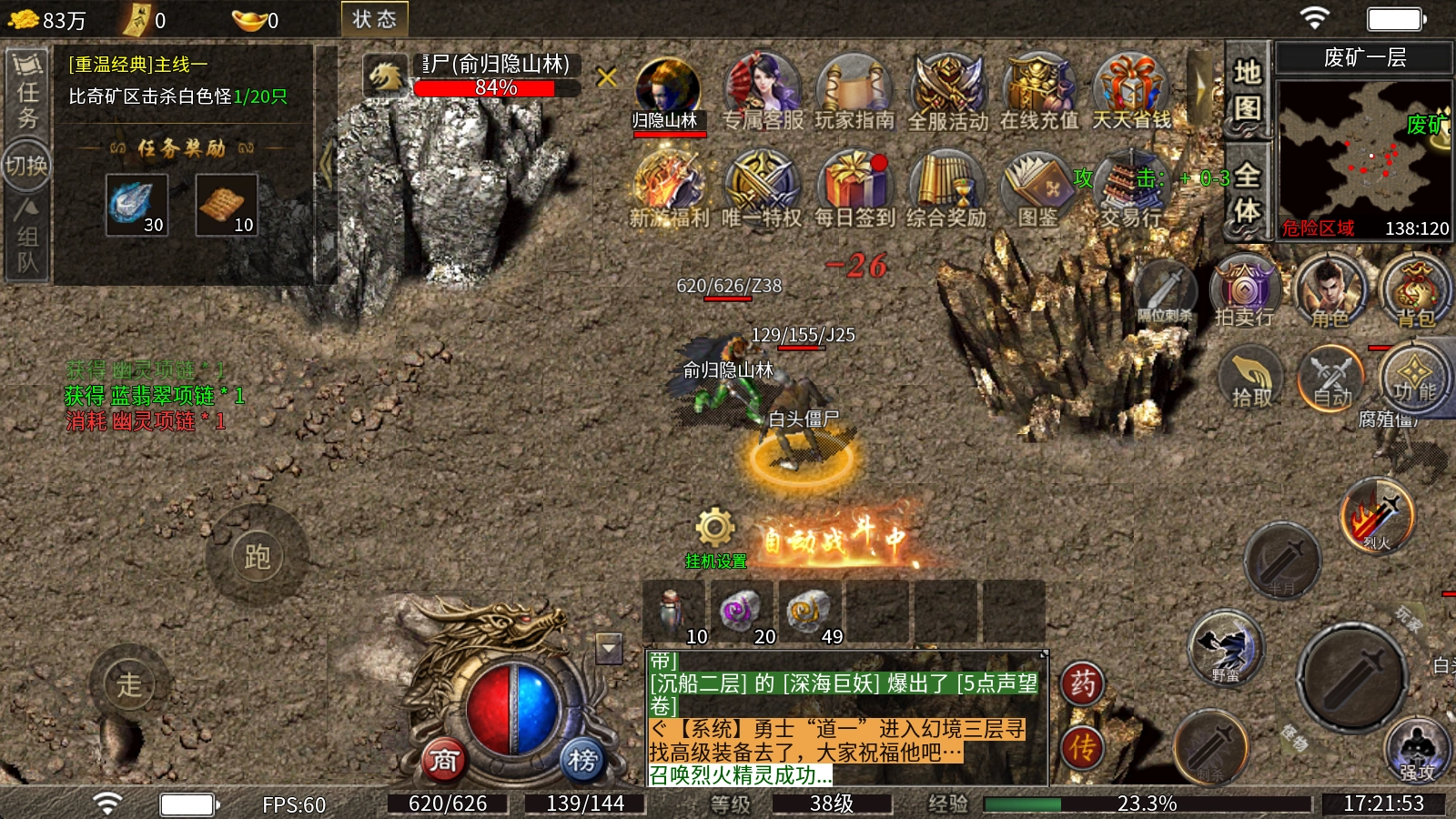 1、上线即可领取《新游福利》中的“运7武器”与“运2吸血项链”,跟着主线任务走,就能轻松升级到40级左右。