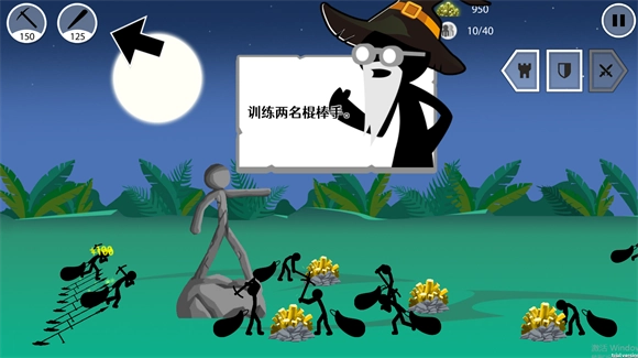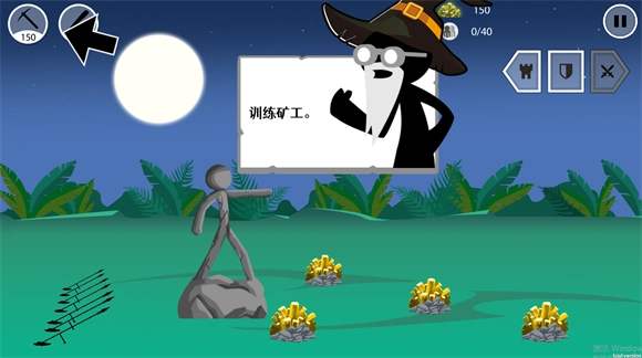 1、玩家首先得训练一批矿工,让他们帮忙采矿,从而获取金币