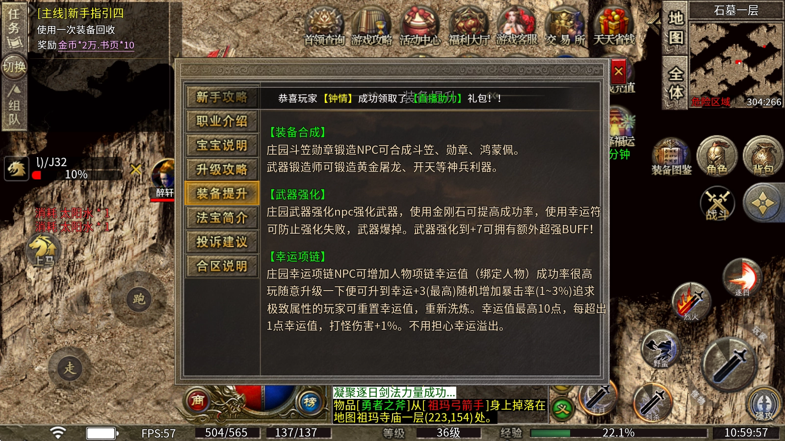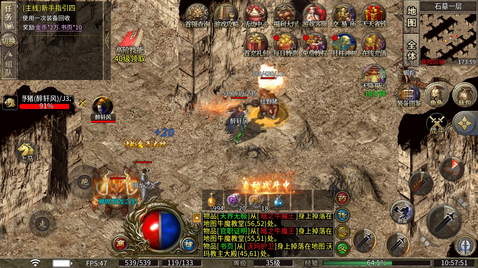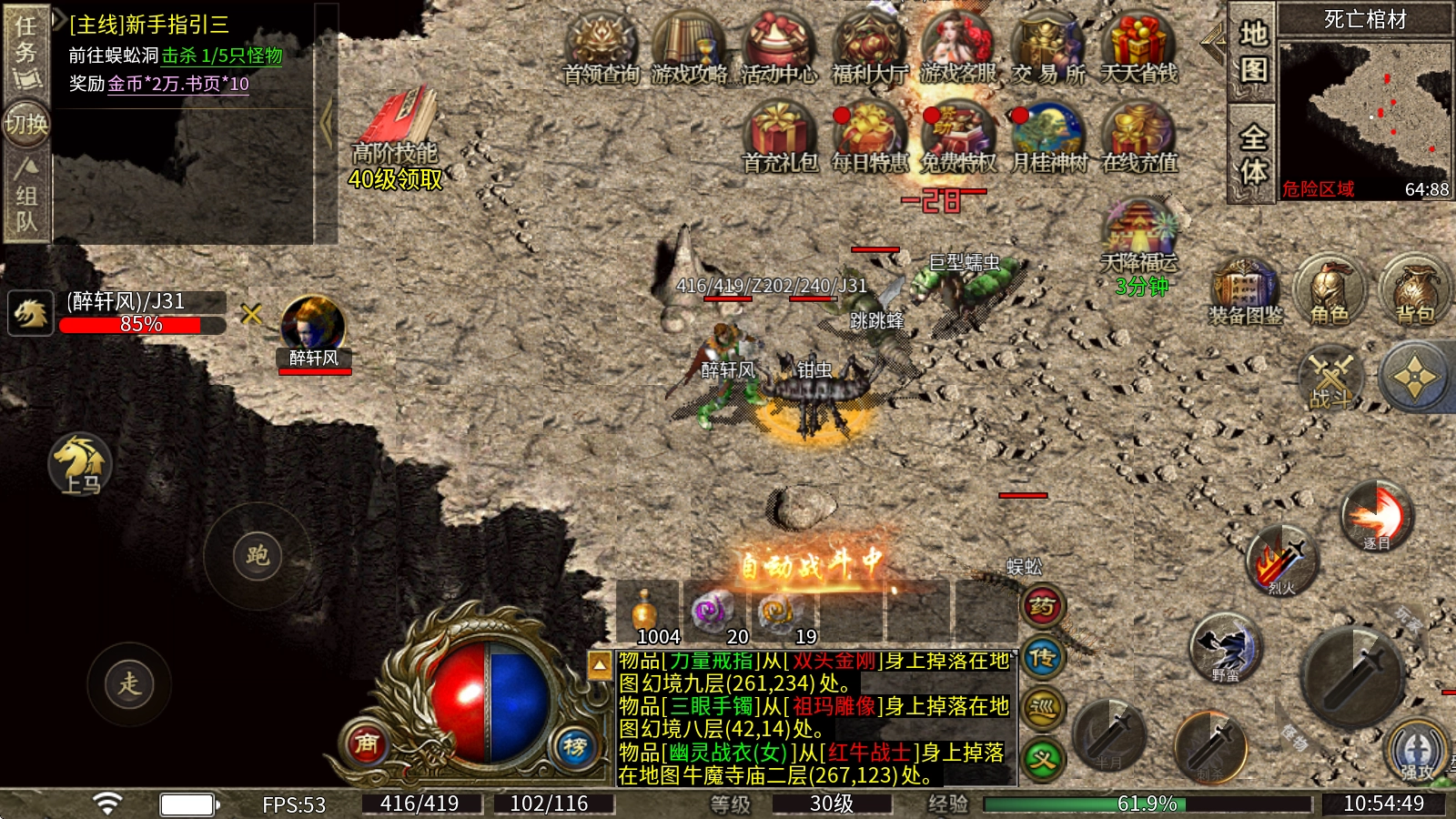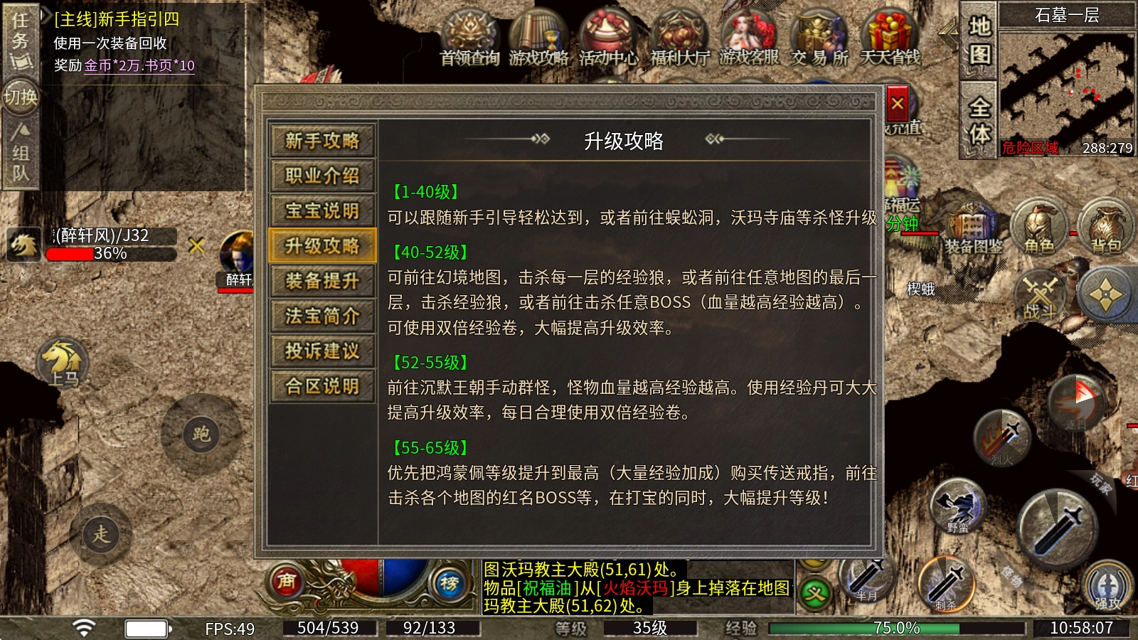 可以跟着新手引导轻松达成目标,也可以去蜈蚣洞、沃玛寺庙等地杀怪升级。