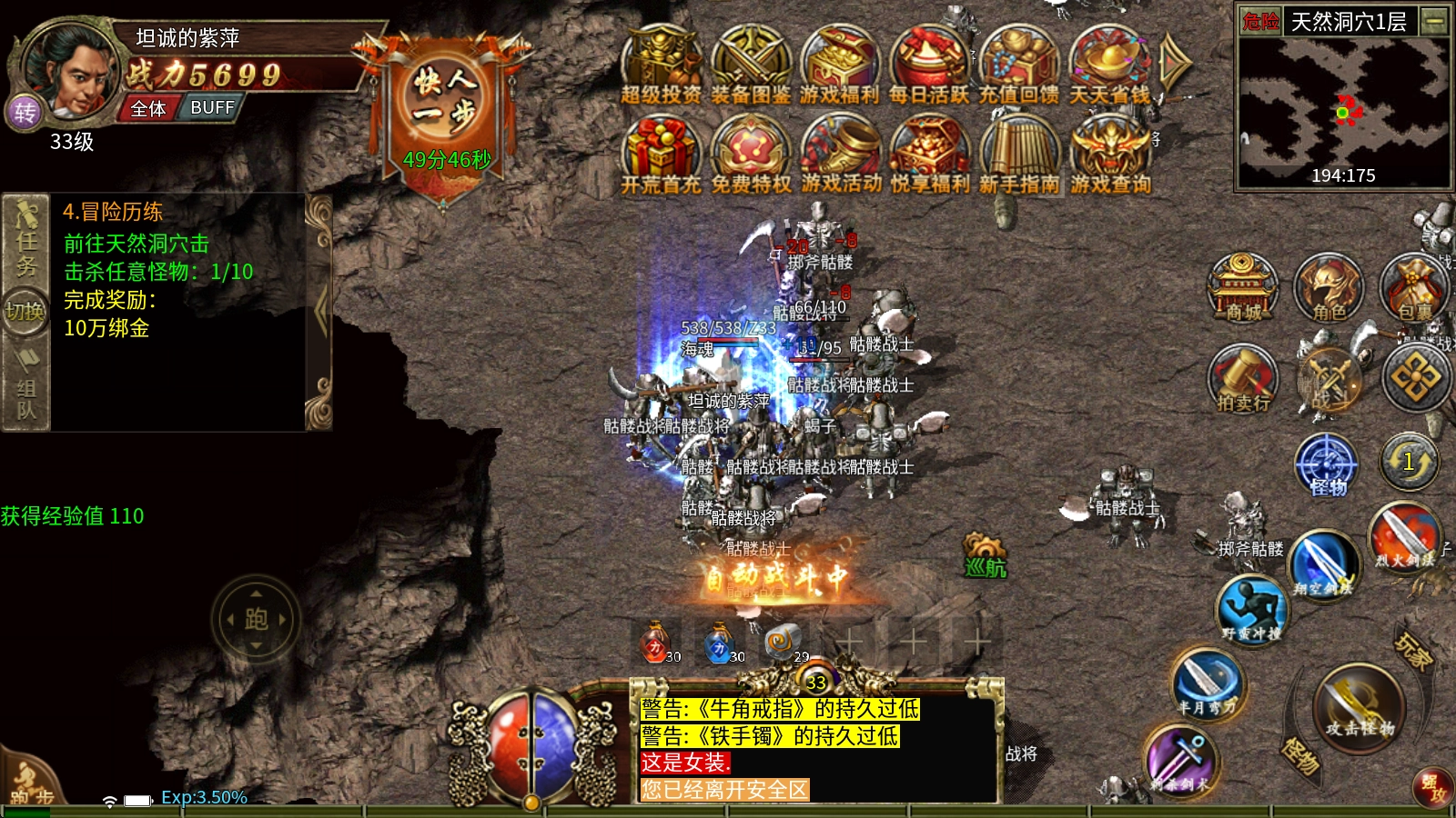 本服地图无门槛进入,爆率全面开放,打宝PK更添激情!装备材料均可获取,时间就是一切,凭肝也能挑战土豪!