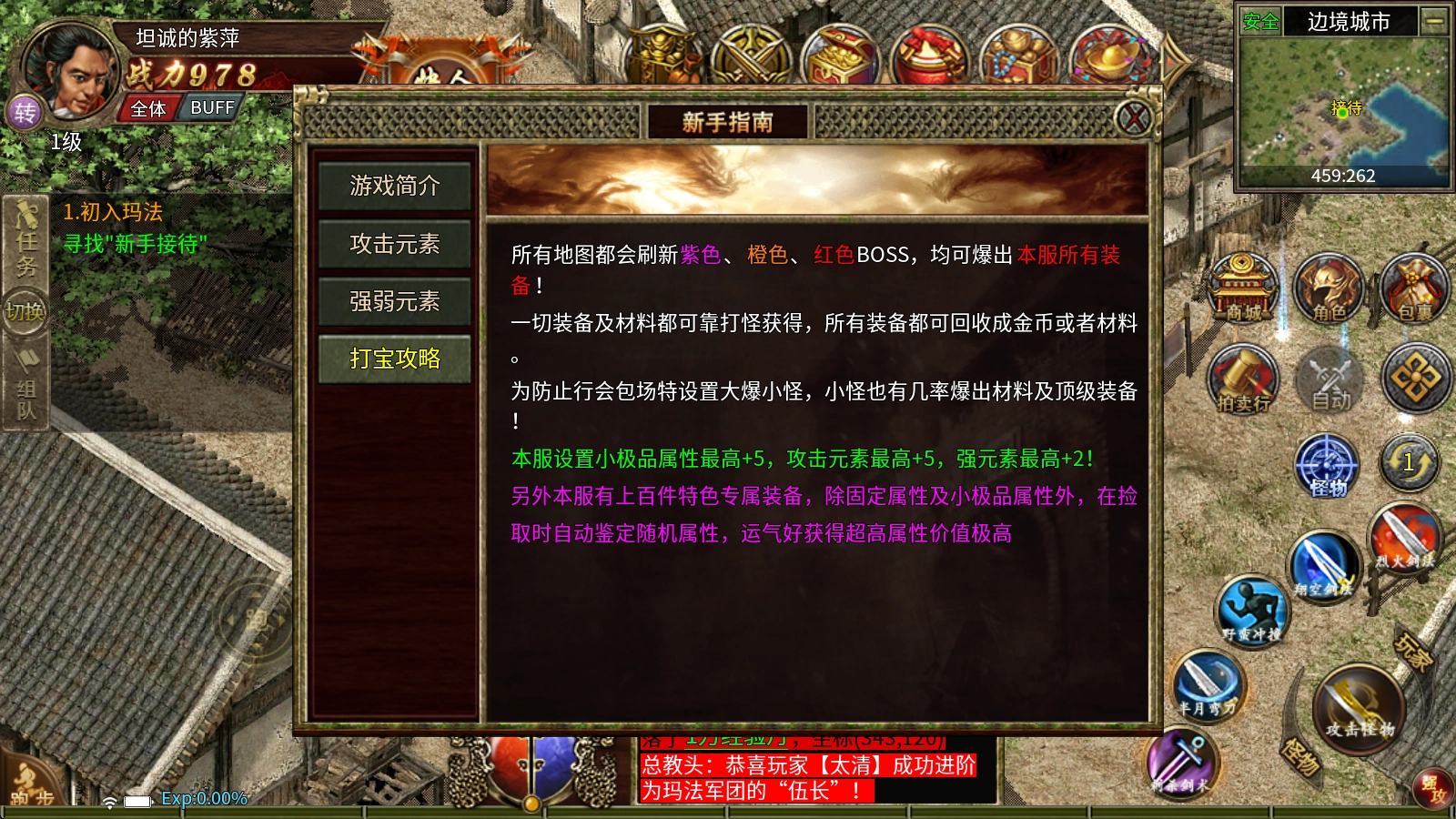 1、本服所有地图均会刷新紫色、橙色、红色BOSS,这些BOSS都能掉落本服的全部装备!
