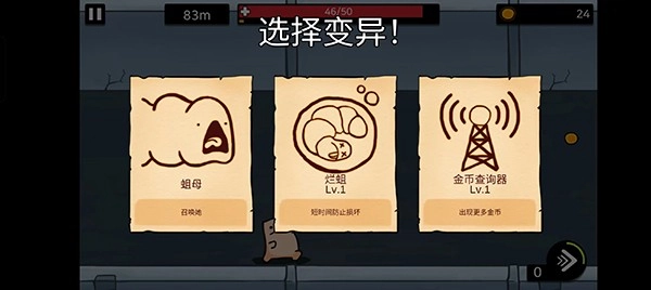 5、当吃到的肉块数量足够多时,就能够选择一次变异,而变异的结果都是随机的。