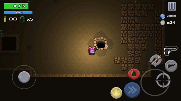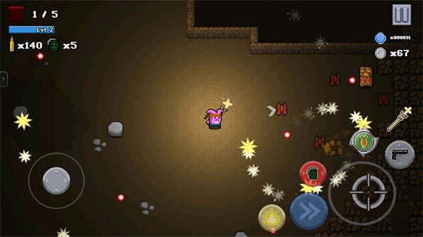 这个游戏的玩法相对简单,只要拿起武器消灭敌人就行,唯一需要留意的是武器的子弹数量。游戏里的每把武器都有固定的子弹数,子弹用完就没法继续战斗了。所以得灵活闪避敌人的攻击,合理利用每一颗子弹去消灭更多敌人,然后不断向下探索,抵达最深处,击败强大的boss来保护这个世界。