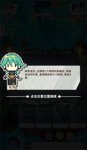 2、成功购买后,若拥有三个相同的英雄,该英雄将自动升星;星级越高,战斗力越强,最高可升至三星。