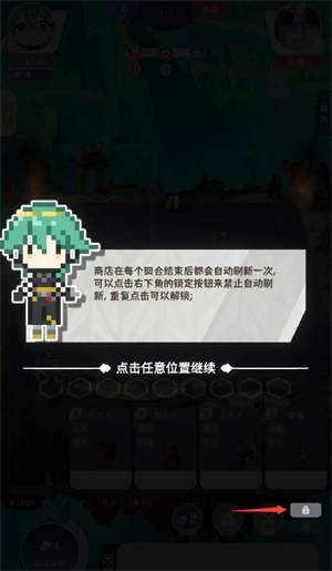 3、每个回合结束后商店会自动刷新一次,你可以点击右下角的锁定按钮来关闭自动刷新功能,再次点击该按钮即可重新开启自动刷新。