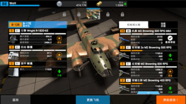 2、这里提供了数十种史诗级的飞机升级选项,涵盖装甲、机身、武器等多个方面,你可以根据自己的喜好自由进行定制。