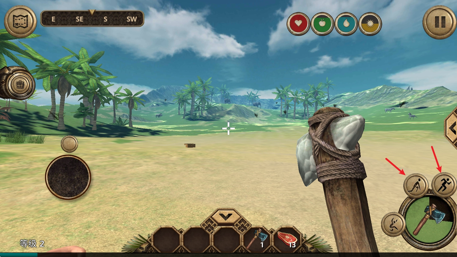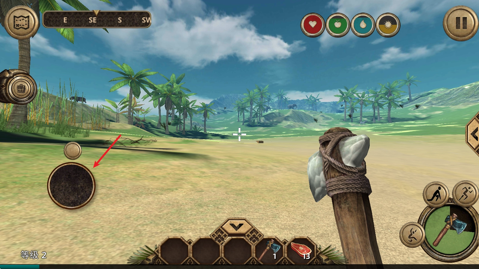 1、中,左侧的摇杆控制人物移动。
