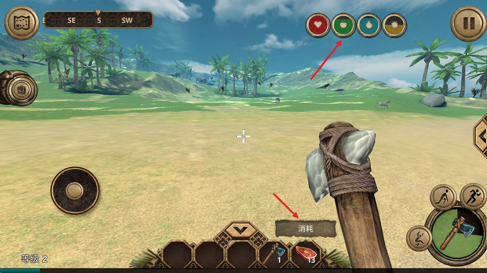 1、通过收集物资与狩猎获取充足资源,制作工具、建造建筑物,以此保障自身生存,并搭建属于自己的避难所。
