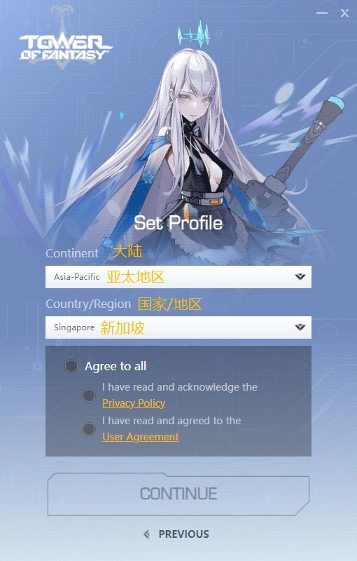 5. 注册界面需先填写地区信息 此处以亚服-新加坡为例,大家也可选择其他服务器对应的国家和地区,确保与所选服务器的地区相匹配即可