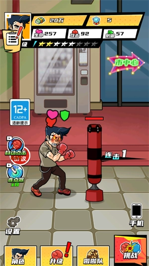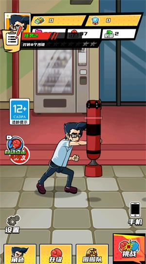 1、玩家需持续点击屏幕,通过打破沙袋来增强自身实力