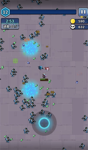 1、玩家需通过滑动轮盘操控角色移动,角色会自动对敌人发起攻击