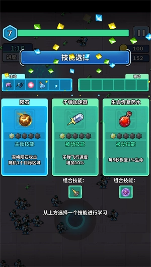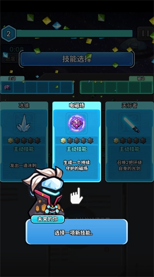 2、玩家积累足够经验后即可升级,升级时能从三种能力里选择其中一种来提升