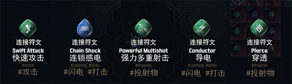 技能符文所代表的核心技能包括闪电、投射物、弓箭之类的类型。