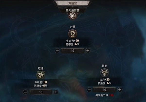 天赋系统,也就是游戏里的黄道宫系统,为玩家的成长开辟了另一个维度。玩家每提升一级,就能得到5点能力值点数,这些点数可以由玩家自由分配到力量、敏捷、智能等能力值体系里。