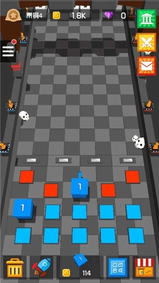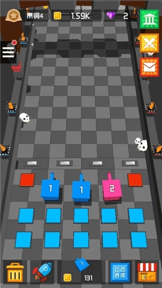 2、将相同的方块炮塔进行合成升级,火力会瞬间暴涨,轻松压制强大的对手。