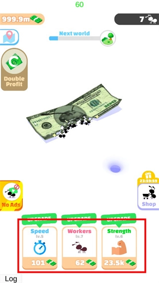2、给你的蚂蚁军团供给食物,让它们吞噬掉眼前所有东西,这样你就能得到一枚可以随意使用的奖励金币。