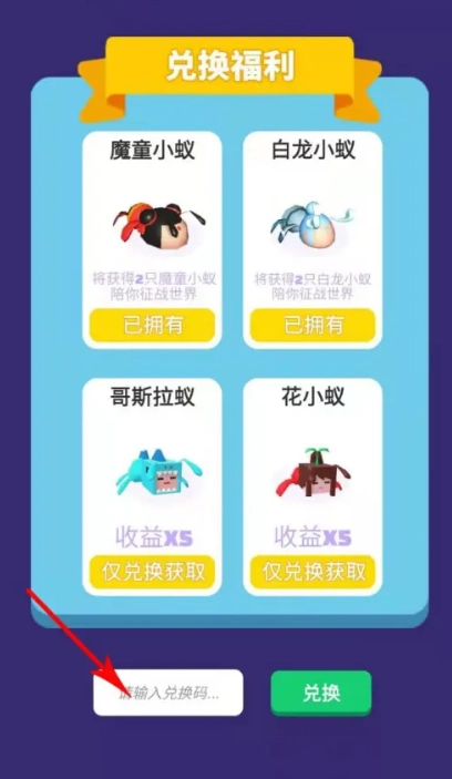 1、启动小蚁帝国应用,点击界面右下角的入口进入“精品兑换”页面;