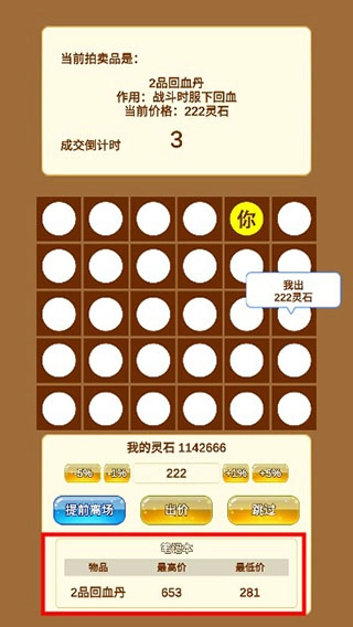 2、拍卖经营的核心玩法是:先对物品价格进行估算,再运用拍卖技巧以较低价格买入、较高价格卖出,从而赚取灵石与修炼资源。