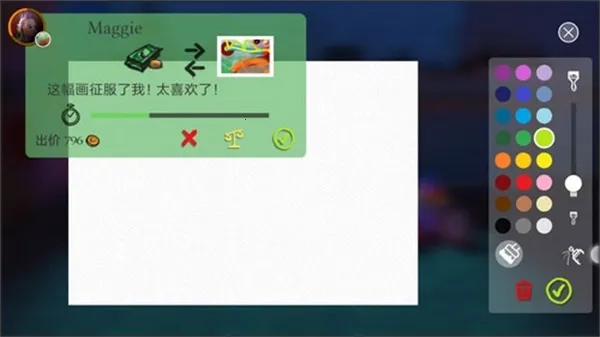 1、充分展现绘画才能:面对一块空白画布,玩家能够尽情挥洒创意,展现自身的绘画天赋,在释放创作力量的同时还能获得收益。