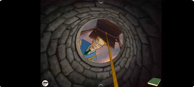 3.从当前位置退出来,前往右侧的井边,拉动左上方的把手,你会看到绳子断裂了。