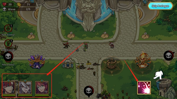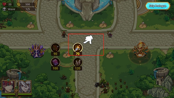 进入关卡后,点击道路两侧的空地就能建造防御塔,要依据敌人的类型挑选合适的塔种。