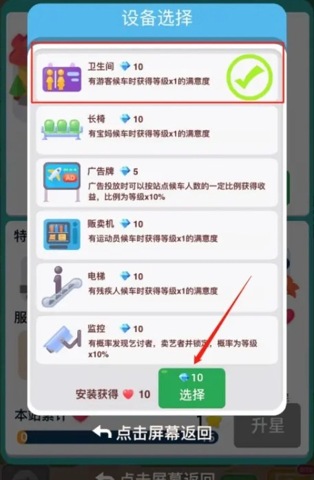 在“设备选择”界面里,选好你想添加的服务设施后,点击下方的“选择”按钮。