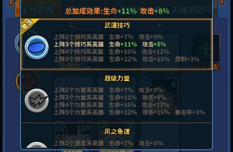 4、玩家让阵营英雄上阵,还能得到额外的属性加成,从而提升大量战力。