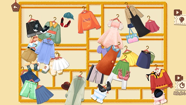 4、进入服装搭配关卡后,要为角色打造好看的造型,可点击衣架旁的箭头来切换查看下一页的服装与饰品。