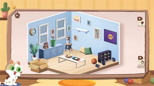 2、在整理过程中,可爱的猫咪会突然出现,为玩家提供解题通关的小提示。