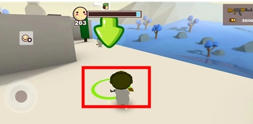 7、长按指纹图标控制方向,瞄准敌人后自动射击。