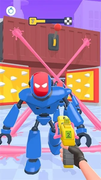 2. 趣味玩法,拿起手枪攻击毁灭机器人军团,在对战中赢得每场战斗。