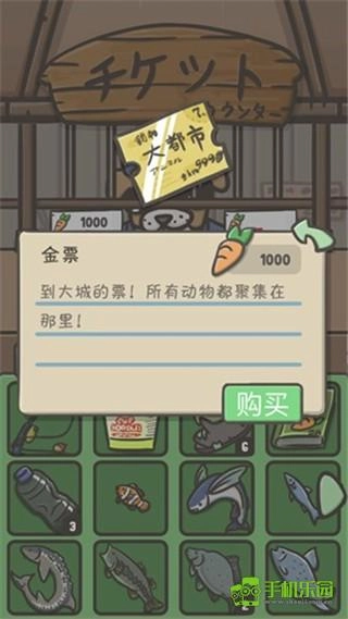 钓鱼得先在杂货铺买到鱼竿才能开始,和长颈鹿一起在湖边钓鱼时,要是看到“?”点击它,就能得到各种鱼和奇奇怪怪的东西。