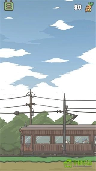 3、我们可以看到月兔坐在火车上,慢慢的开往城里。