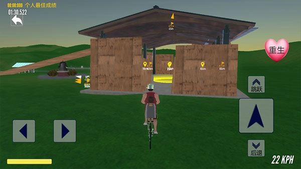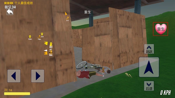 6、玩家需留意道路上的障碍与周围的暗箭,行驶路线不固定,抵达目的地即为完成;若受伤摔倒,可通过重生功能重新开始。